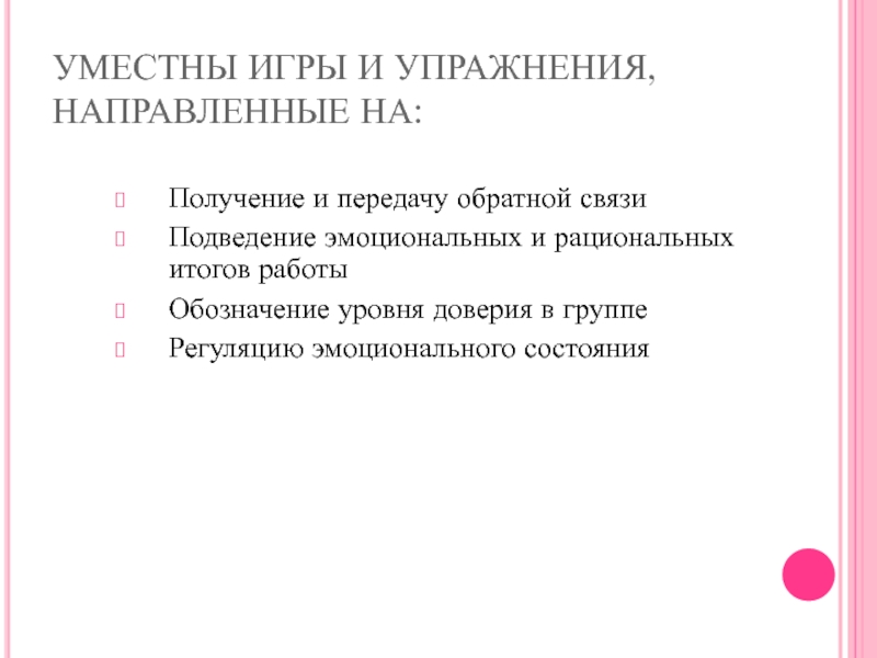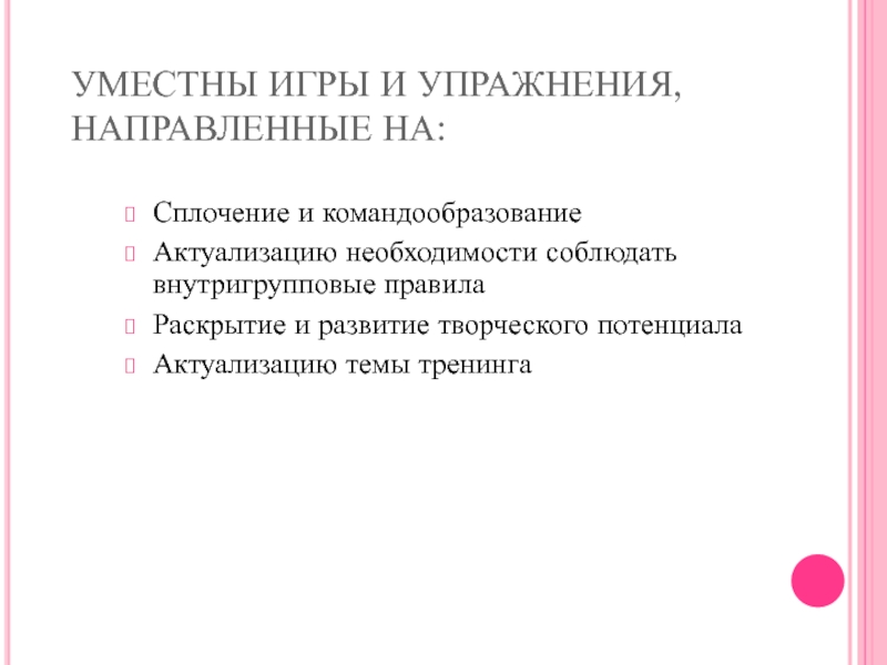 Слайд 23УМЕСТНЫ ИГРЫ И УПРАЖНЕНИЯ, НАПРАВЛЕННЫЕ НА: