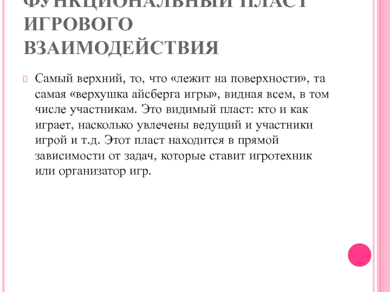 Слайд 6ФУНКЦИОНАЛЬНЫЙ ПЛАСТ ИГРОВОГО ВЗАИМОДЕЙСТВИЯ