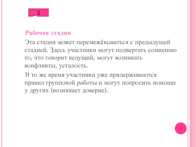 В то же время участники уже придерживаются правил групповой работы и могут попросить помощи у других (возникает доверие).