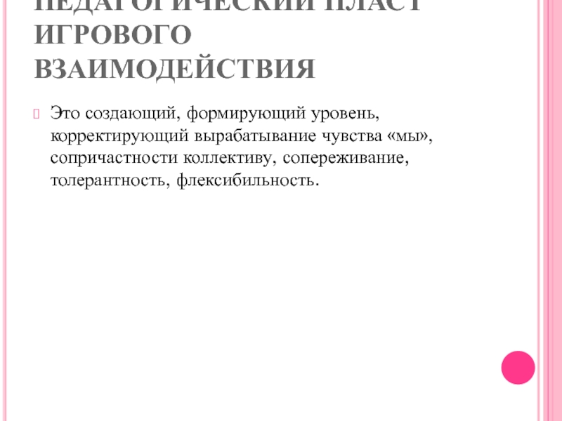 Слайд 9ПЕДАГОГИЧЕСКИЙ ПЛАСТ ИГРОВОГО ВЗАИМОДЕЙСТВИЯ
