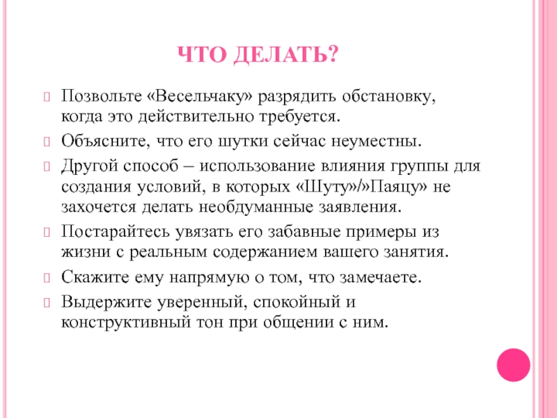 Другой способ – использование влияния группы для создания условий, в которых «Шуту»/»Паяцу» не захочется делать необдуманные заявления.