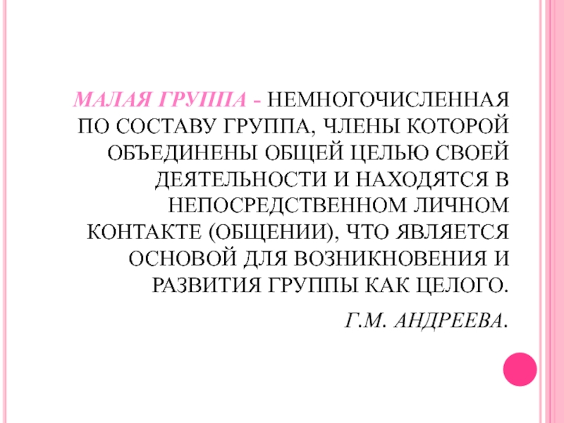 Слайд 14МАЛАЯ ГРУППА - НЕМНОГОЧИСЛЕННАЯ ПО СОСТАВУ ГРУППА, ЧЛЕНЫ КОТОРОЙ ОБЪЕДИНЕНЫ ОБЩЕЙ