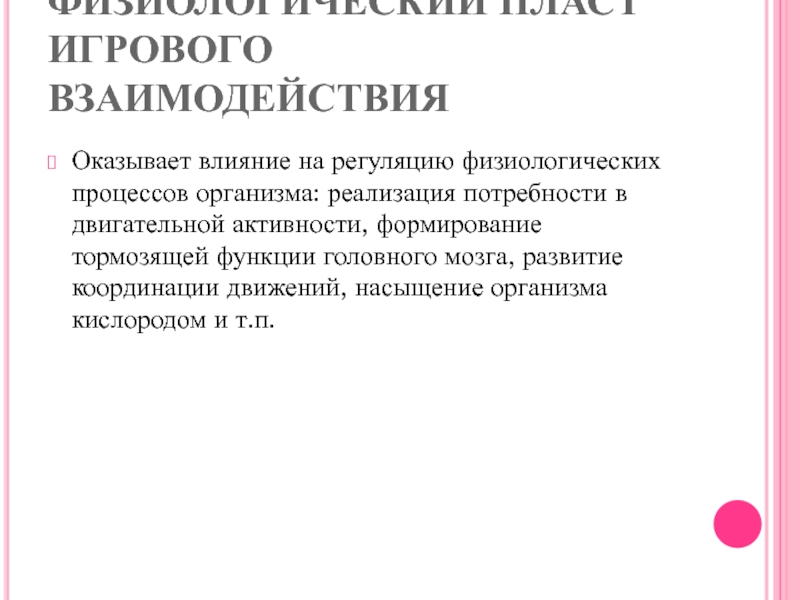 Слайд 7ФИЗИОЛОГИЧЕСКИЙ ПЛАСТ ИГРОВОГО ВЗАИМОДЕЙСТВИЯ