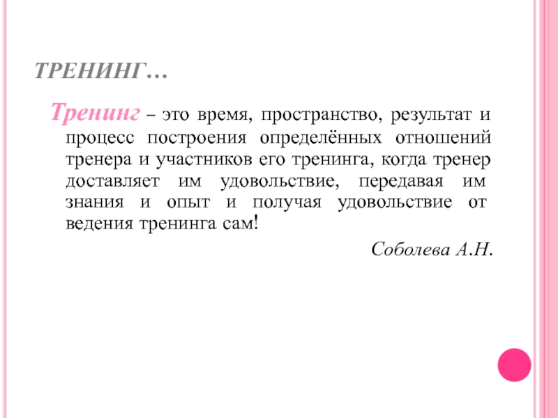 Тренинг – это время, пространство, результат и процесс построения определённых отношений