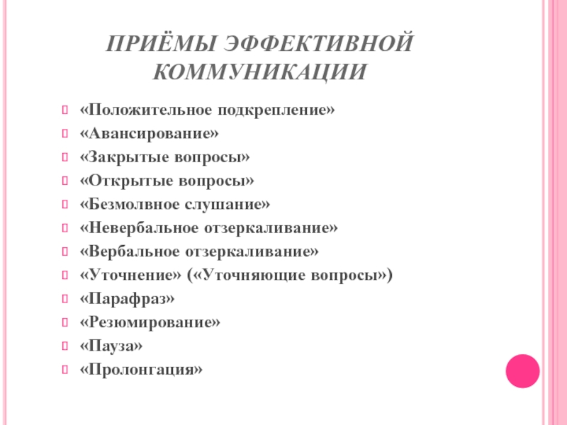 Слайд 13ПРИЁМЫ ЭФФЕКТИВНОЙ КОММУНИКАЦИИ