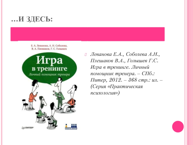 тренинге. Личный помощник тренера. – СПб.: Питер, 2012. – 368 стр.: ил. – (Серия «Практическая психология»)