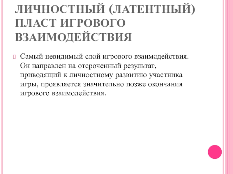 Слайд 10ЛИЧНОСТНЫЙ (ЛАТЕНТНЫЙ) ПЛАСТ ИГРОВОГО ВЗАИМОДЕЙСТВИЯ