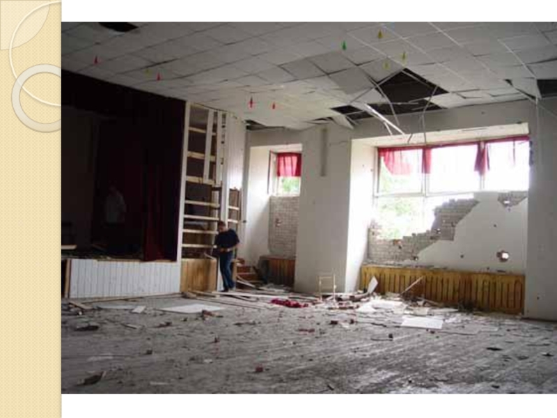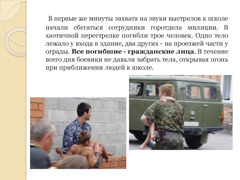 Слайд 13 В первые же минуты захвата на звуки выстрелов к школе начали