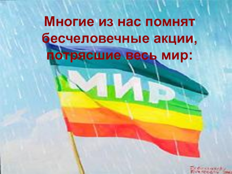Слайд 7Многие из нас помнят бесчеловечные акции, потрясшие весь мир: