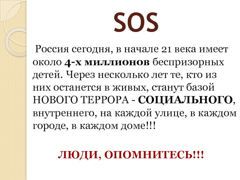 Россия сегодня, в начале 21 века имеет около 4-х миллионов беспризорных