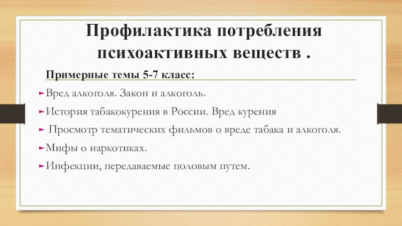 Профилактика потребления психоактивных веществ : Общее представление о ПАВ. Вред от употребления табака, алкоголя, наркотиков. Законодательство и употребление ПАВ. СПИД и ВИЧ. ИППП.