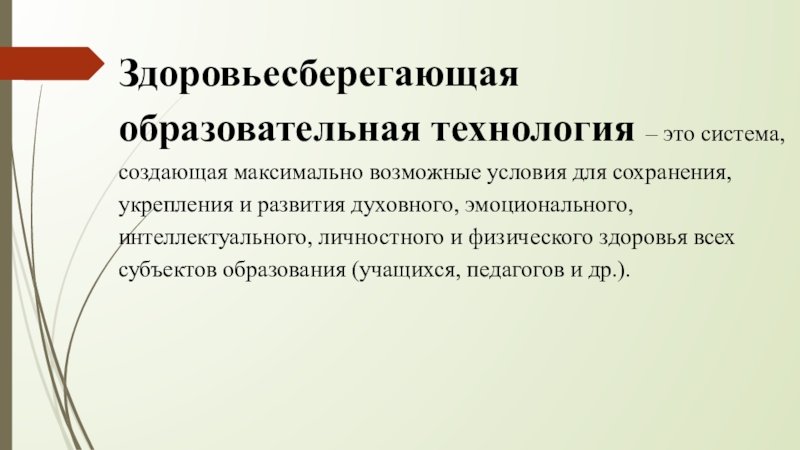 Слайд 4Здоровьесберегающая образовательная технология – это система, создающая максимально возможные условия для