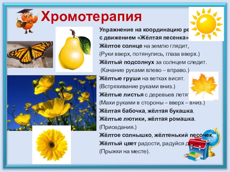 Желтый цвет: вызывает чувство покоя, нейтрализует