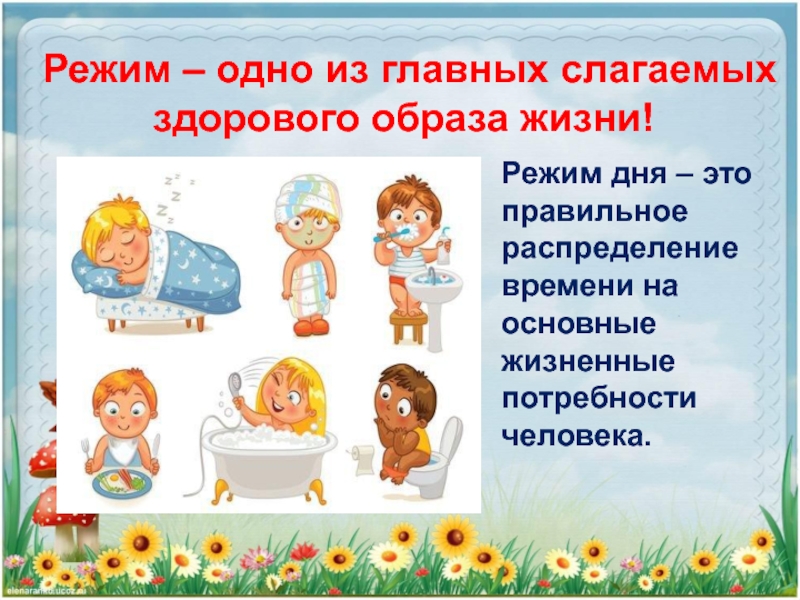 Режим – одно из главных слагаемых здорового образа жизни!Режим дня – это правильное распределение времени на основные