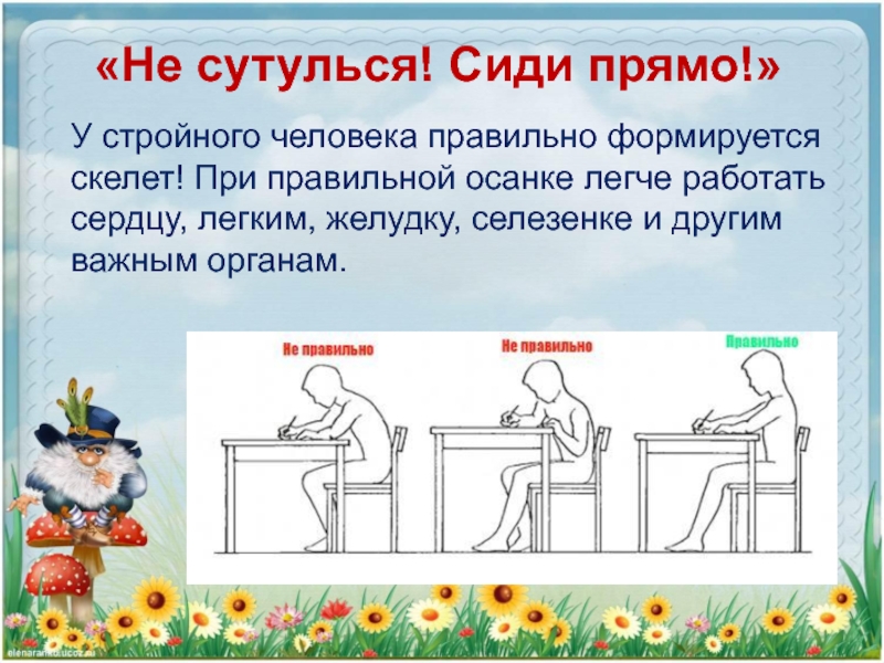 «Не сутулься! Сиди прямо!»У стройного человека правильно формируется скелет! При правильной осанке легче работать сердцу, легким, желудку,