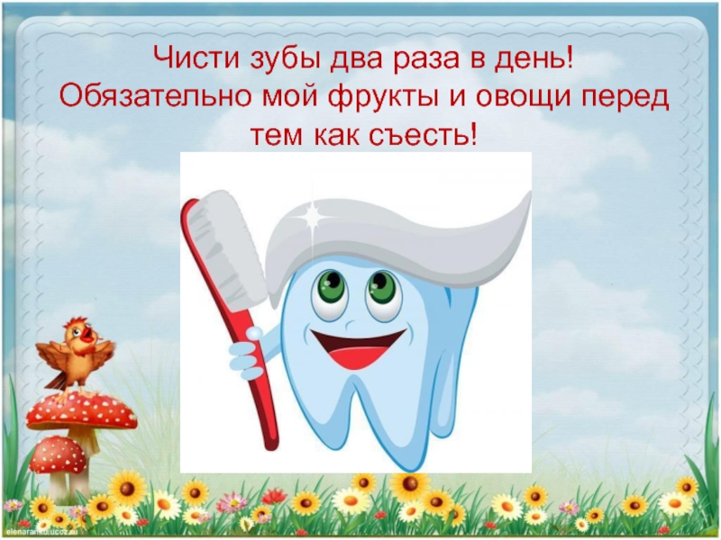 Чисти зубы два раза в день! Обязательно мой фрукты и овощи перед тем как съесть!