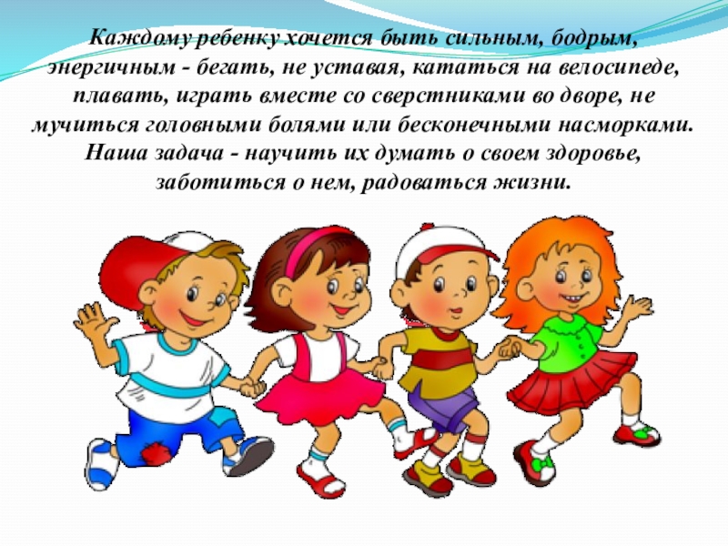 Слайд 23Каждому ребенку хочется быть сильным, бодрым, энергичным - бегать, не уставая,