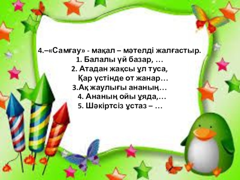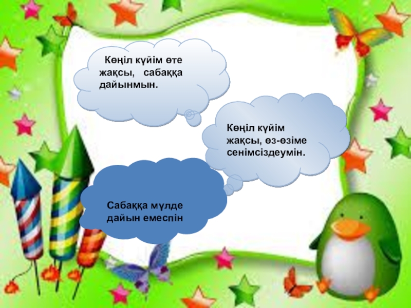 Көңіл күйім өте жақсы, сабаққа дайынмын.