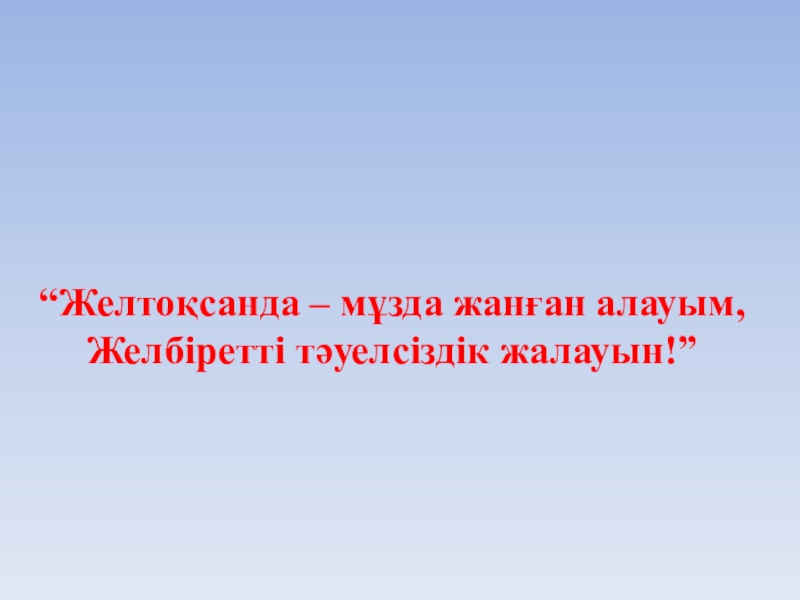 Слайд 1“Желтоқсанда – мұзда жанған алауым, Желбіретті тәуелсіздік жалауын!”
