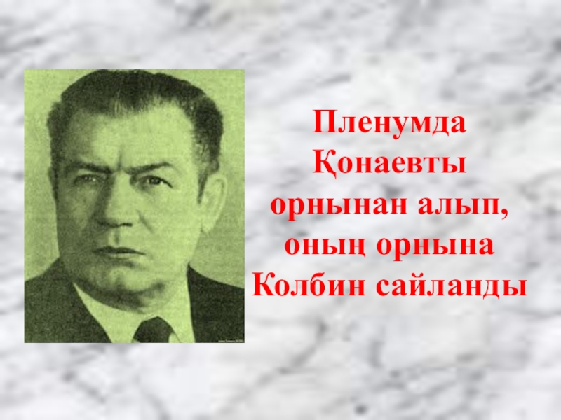 Слайд 4Пленумда Қонаевты орнынан алып, оның орнына Колбин сайланды