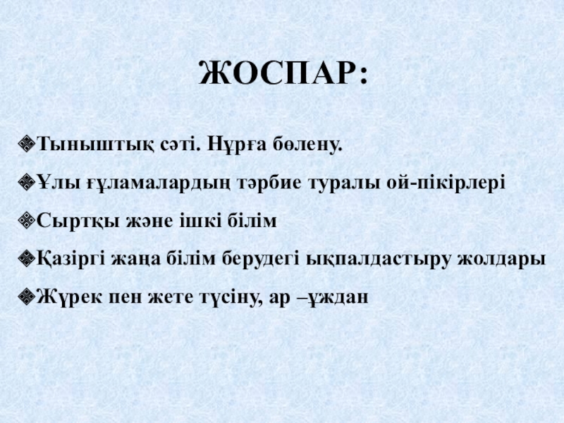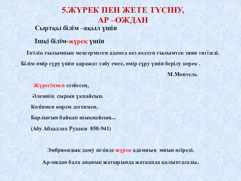 Адамның жаратылысынан бар рухани-адамгершілік қасиеттерін анықтап, күнделікті өмірде жүзеге асыру
