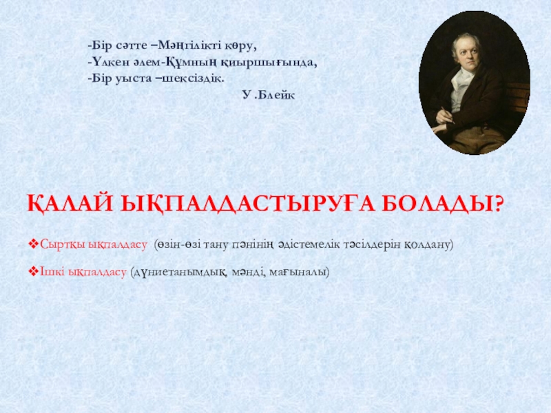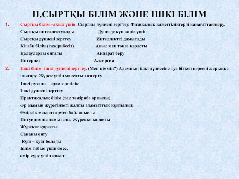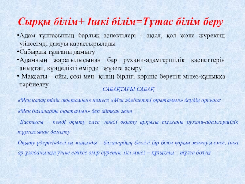 Сырқы білім+ Ішкі білім=Тұтас білім беру