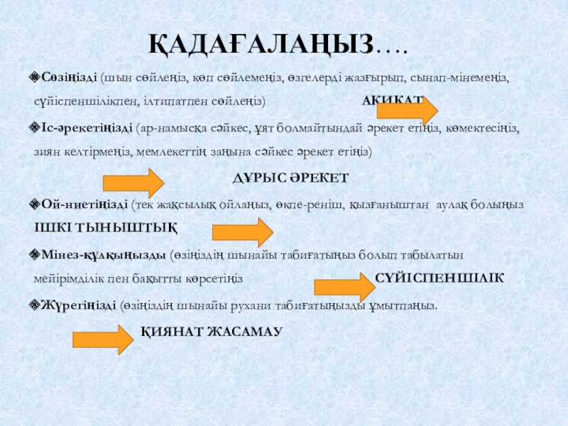 Ақылды, арлы, намысқой азамат болуын қарастыру ;