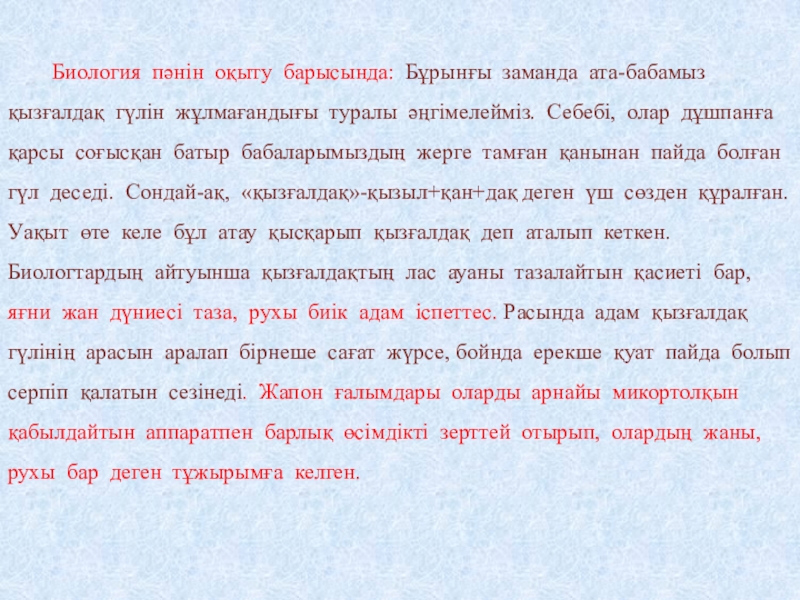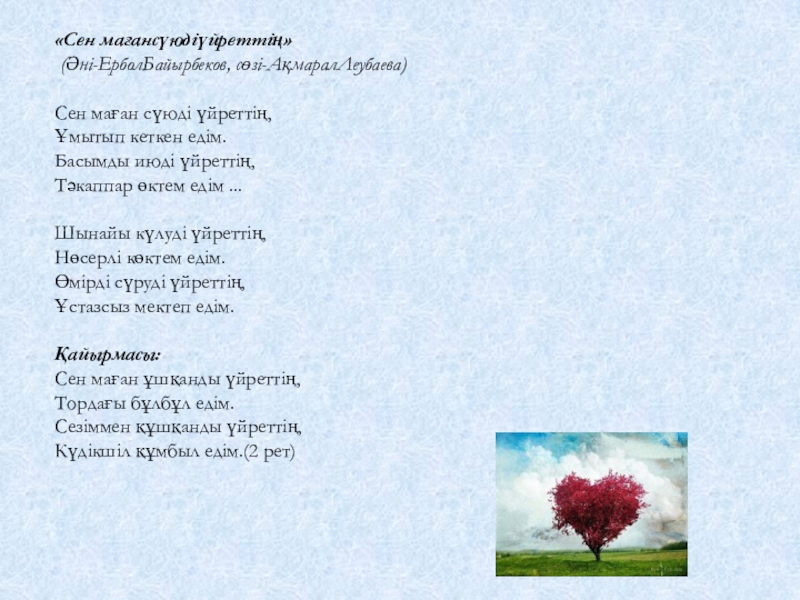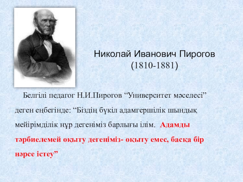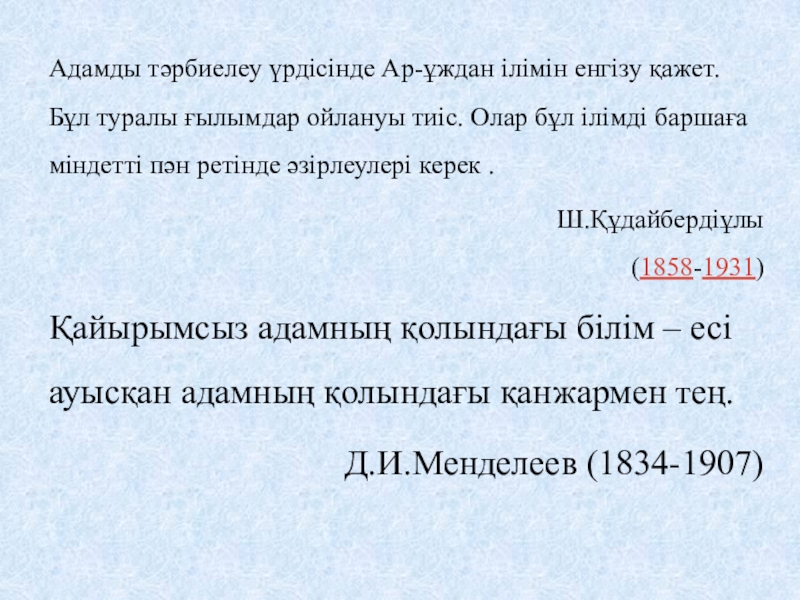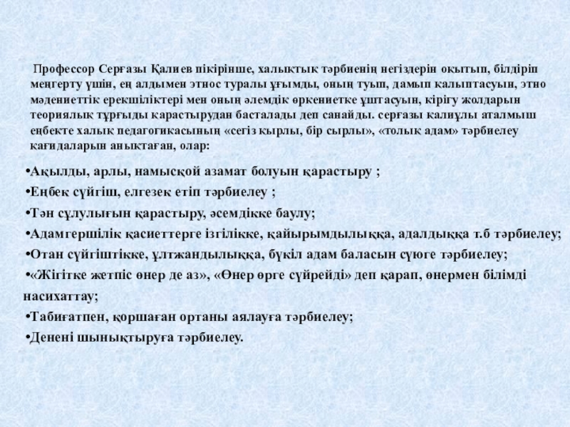 Отан сүйгіштікке, ұлтжандылыққа, бүкіл адам баласын сүюге тәрбиелеу;