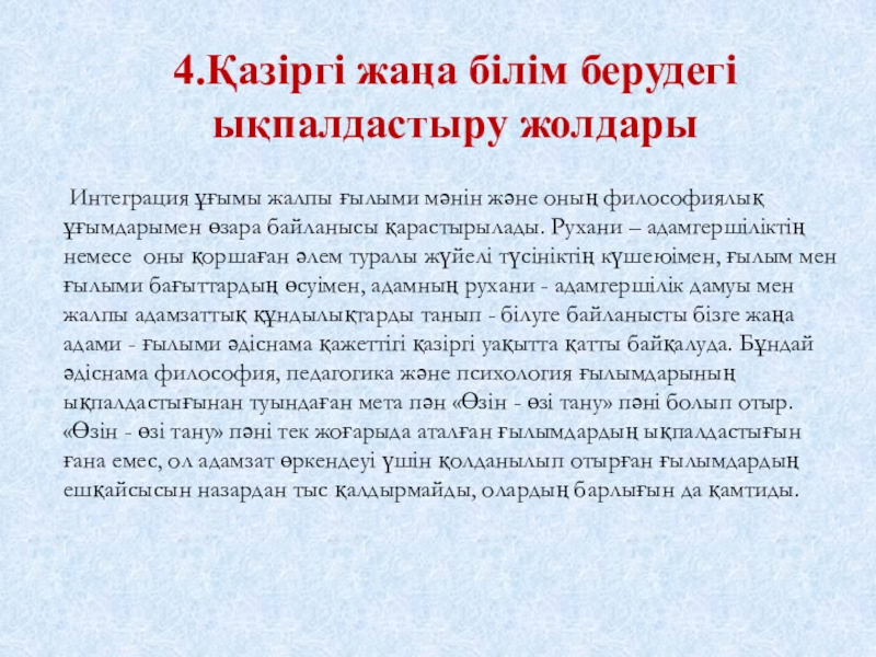 4.Қазіргі жаңа білім берудегі ықпалдастыру жолдары