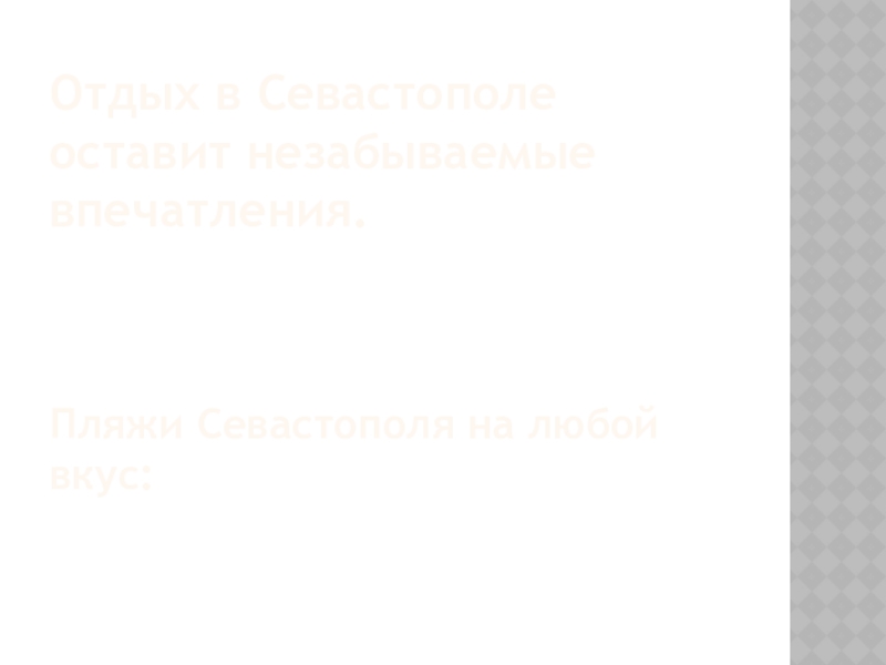 Слайд 11Отдых в Севастополе оставит незабываемые впечатления. Пляжи Севастополя на любой вкус: