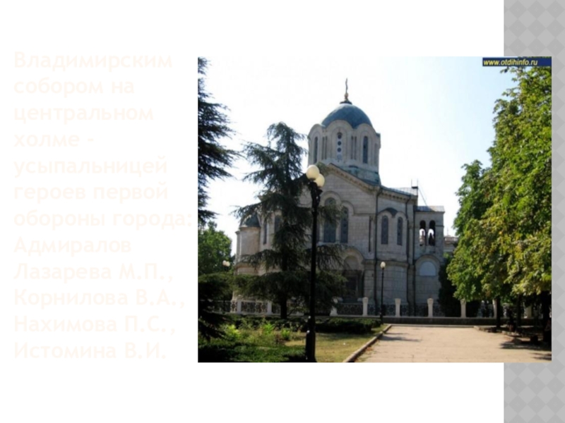 Слайд 5Владимирским собором на центральном холме - усыпальницей героев первой обороны города: