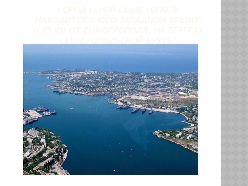 Слайд 2Город герой Севастополь находится в юго-западном Крыму, в 85 км от