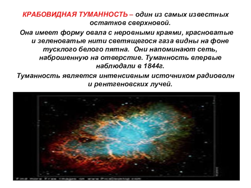 Световой поток, посылаемый одной гибнущей звездой, равен целой галактике. Видимый свет составляет очень маленькую часть освободившейся энергии. Остатки взорвавшейся звезды разлетаются со скоростью до 20 000 км в секунду.