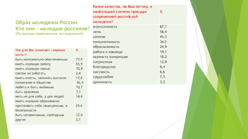 Слайд 5Образ молодежи России. Кто они – молодые россияне? (По данным современных исследований)