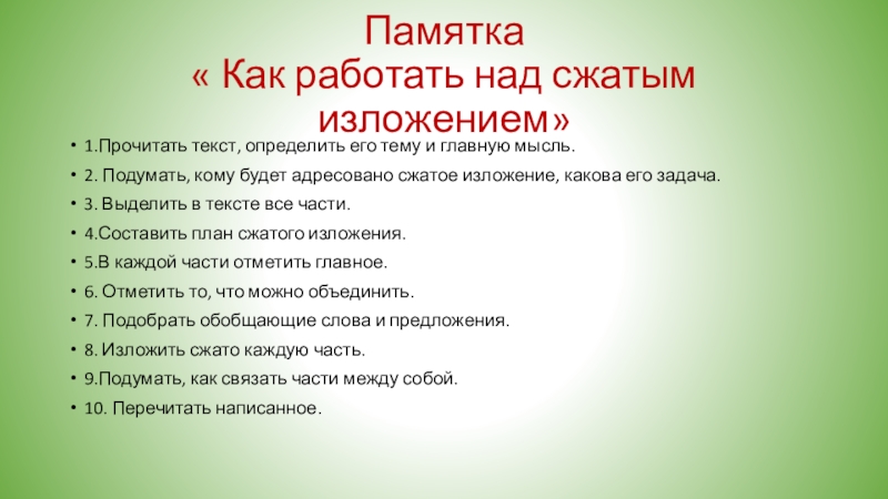 « Как работать над сжатым изложением»