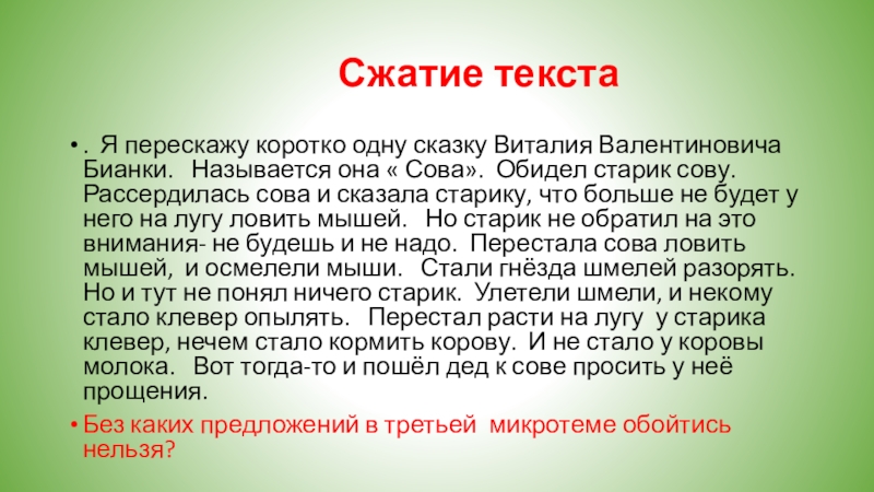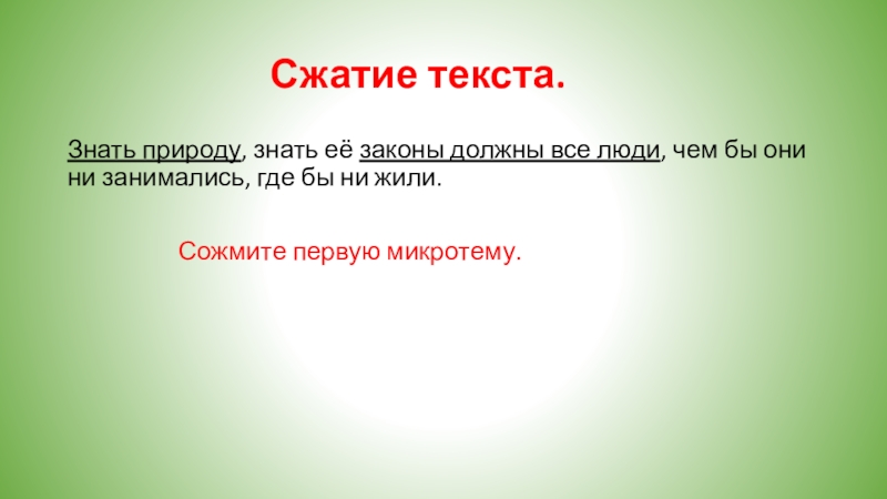 Слайд 1Обучение сжатому изложению.