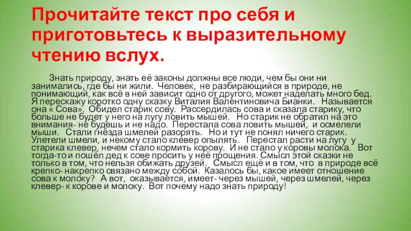 Слайд 6Прочитайте текст про себя и приготовьтесь к выразительному чтению вслух.