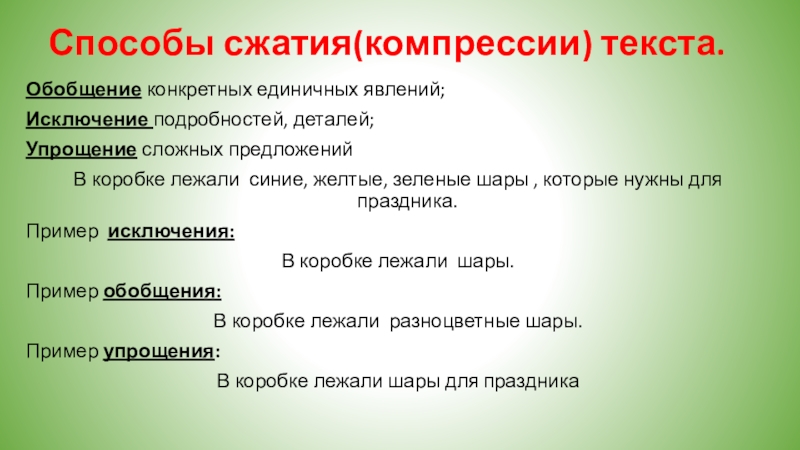 Слайд 12Сжатие текста.