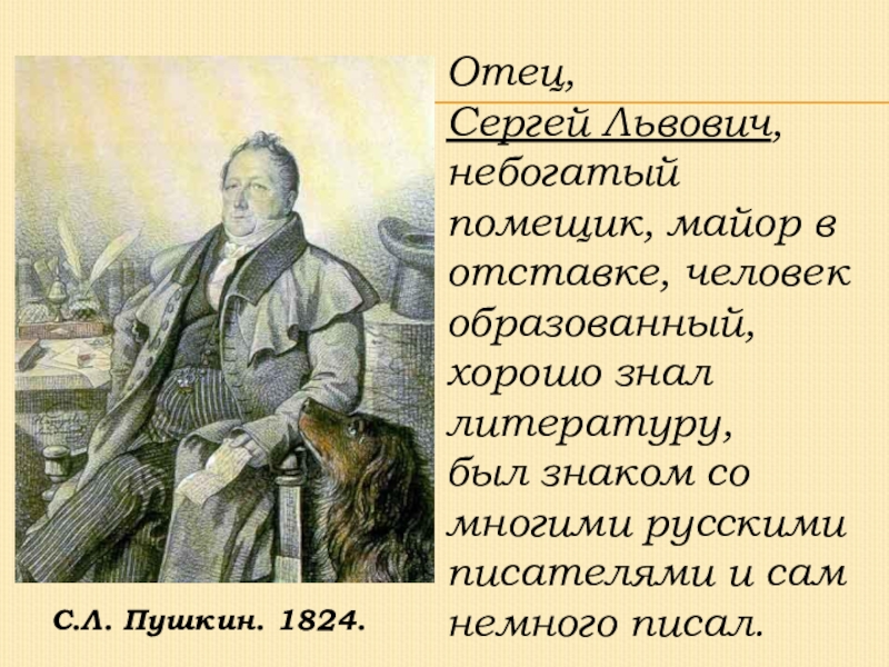 Сергей Львович, небогатый помещик, майор в отставке, человек образованный, хорошо