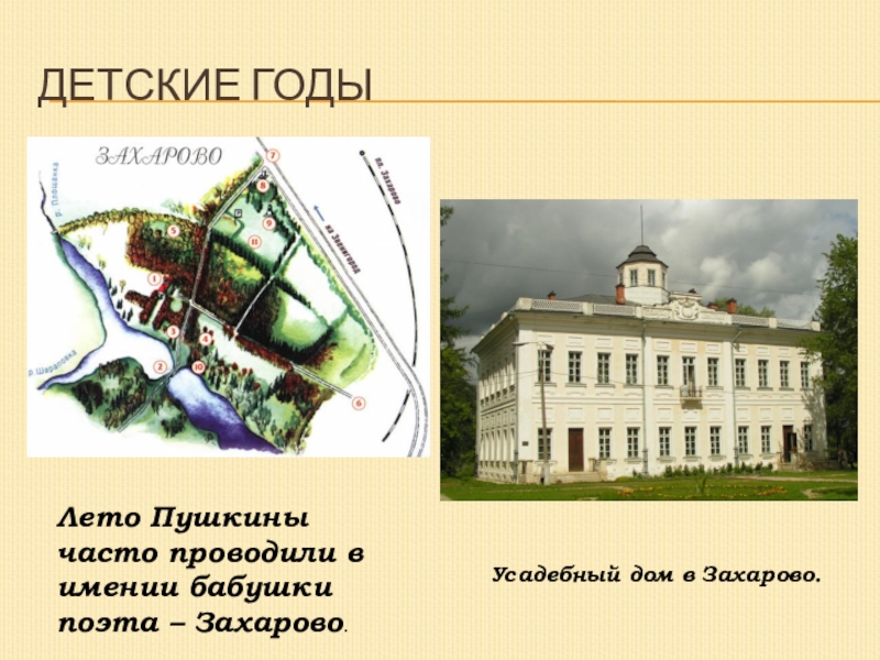 Лето Пушкины часто проводили в имении бабушки поэта – Захарово.