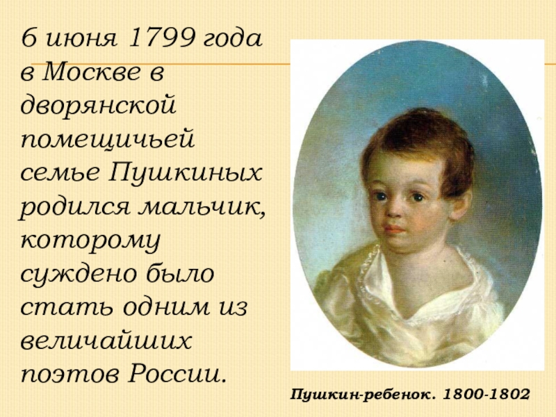 Александр Сергеевич Пушкин родился в день праздника Вознесения. В тот