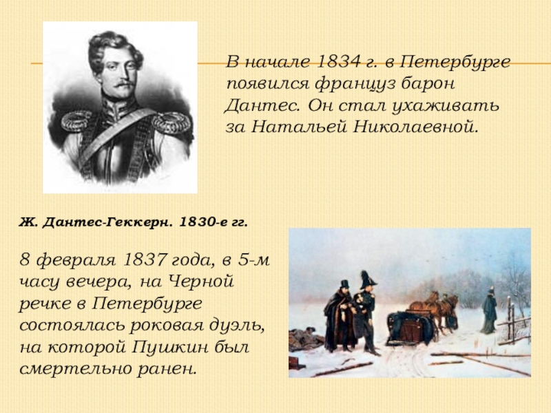 Слайд 45В начале 1834 г. в Петербурге появился француз барон Дантес. Он