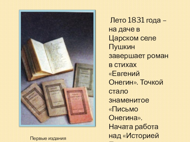 завершает роман в стихах «Евгений Онегин». Точкой стало знаменитое «Письмо Онегина».
