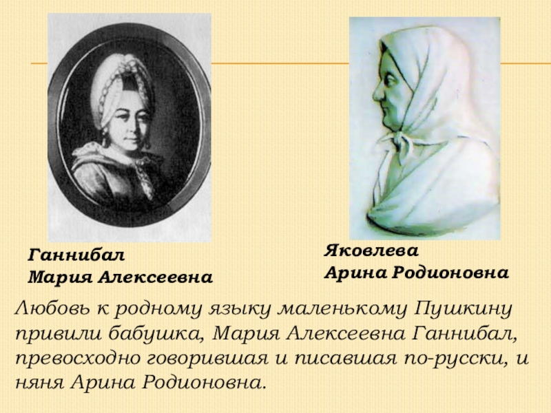 Слайд 11Любовь к родному языку маленькому Пушкину привили бабушка, Мария Алексеевна Ганнибал,