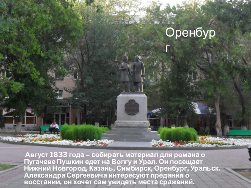 Слайд 44 Август 1833 года – собирать материал для романа о Пугачеве
