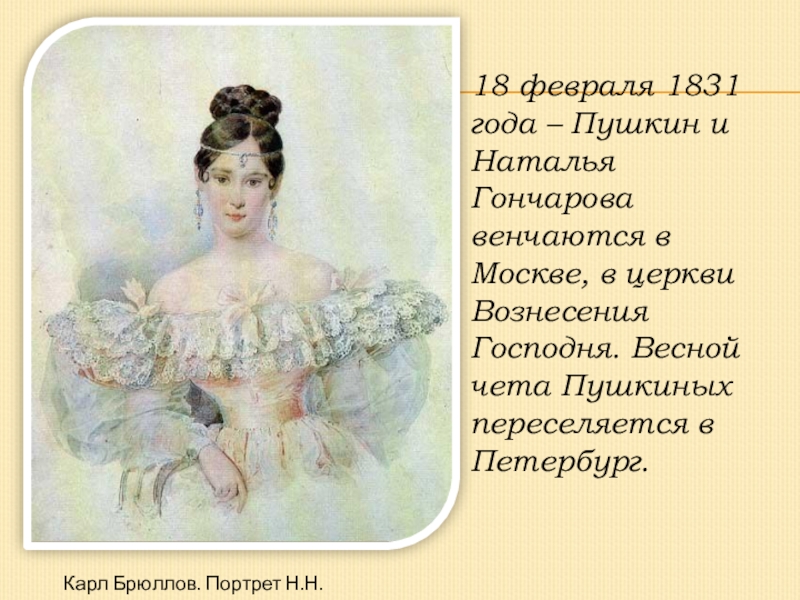 Слайд 3718 февраля 1831 года – Пушкин и Наталья Гончарова венчаются в