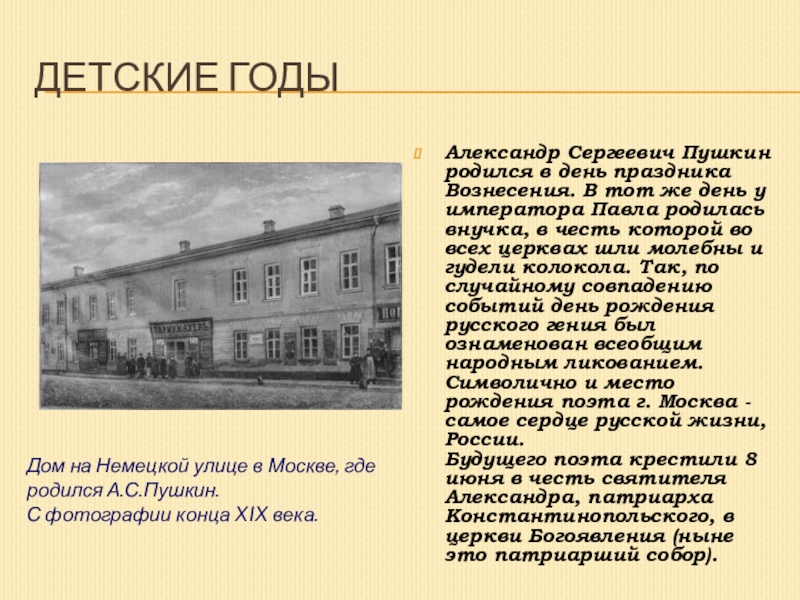 Дом на Немецкой улице в Москве, где родился А.С.Пушкин.