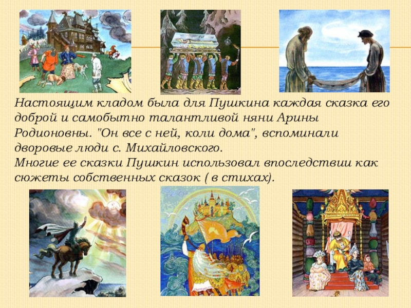 Слайд 12Настоящим кладом была для Пушкина каждая сказка его доброй и самобытно