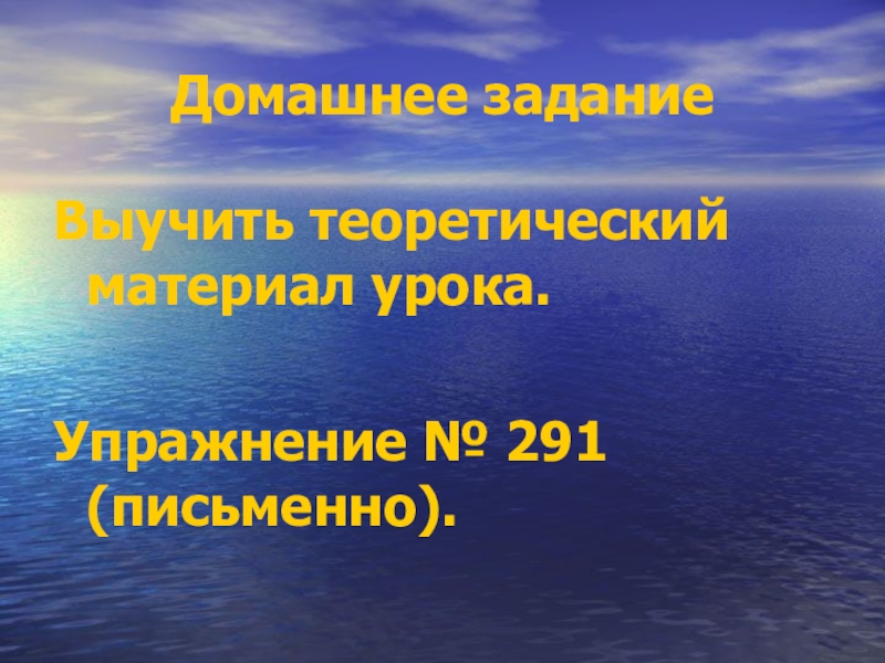 Домашнее заданиеВыучить теоретический материал урока.Упражнение № 291 (письменно).
