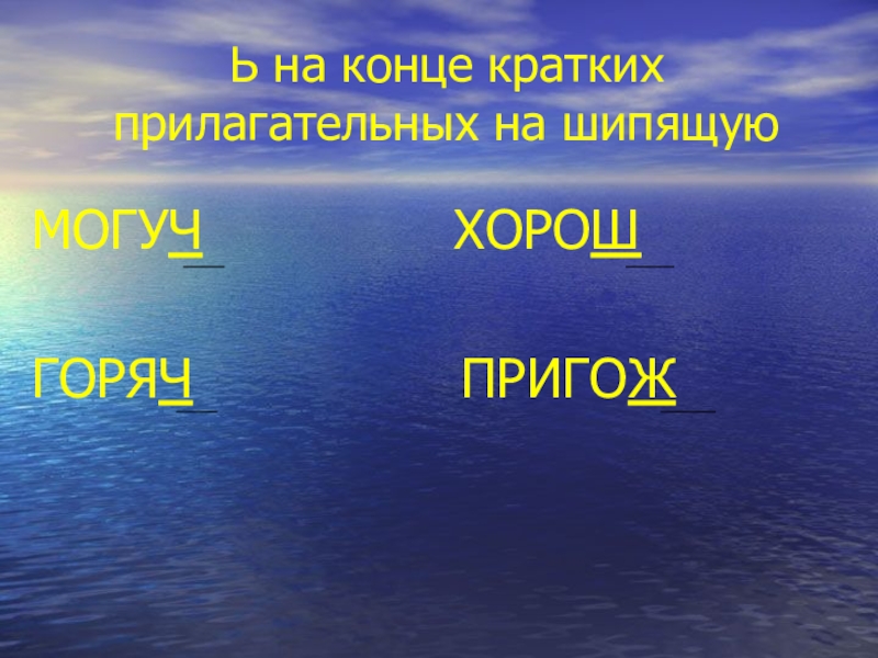 Слайд 3Ь на конце кратких прилагательных на шипящую